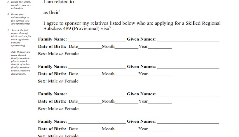 QUESTION: Subclass 489 Relative Sponsor Declaration Form