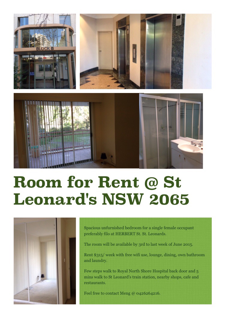ROOM for RENT at the very accesible Herbert Street, St Leonard's NSW 2065