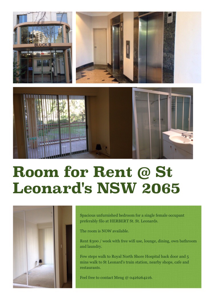 ST LEONARDS NSW 2065 - Room for Rent - close to city