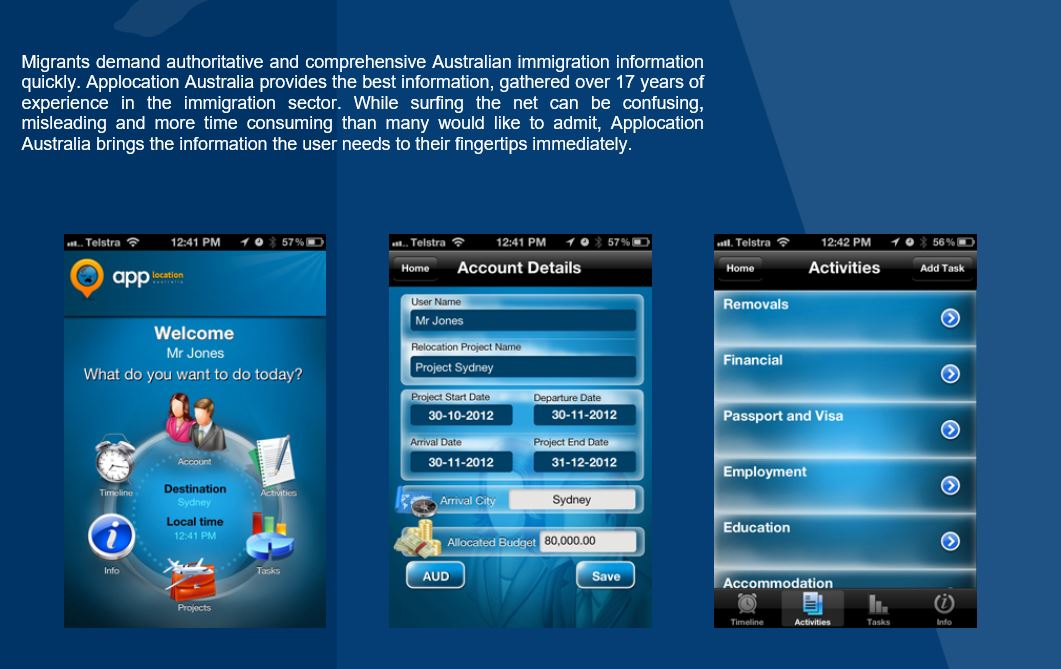 Migrants demand authoritative and comprehensive Australian immigration information quickly. Applocation Australia provides the best information, gathered over 17 years of experience in the immigration sector. While surfing the net can be confusing, misleading and more time consuming than many would like to admit, Applocation Australia brings the information the user needs to their fingertips immediately.