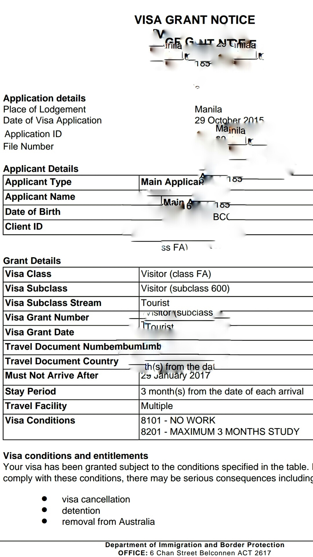 Lodged tourist visa October 27,2015
