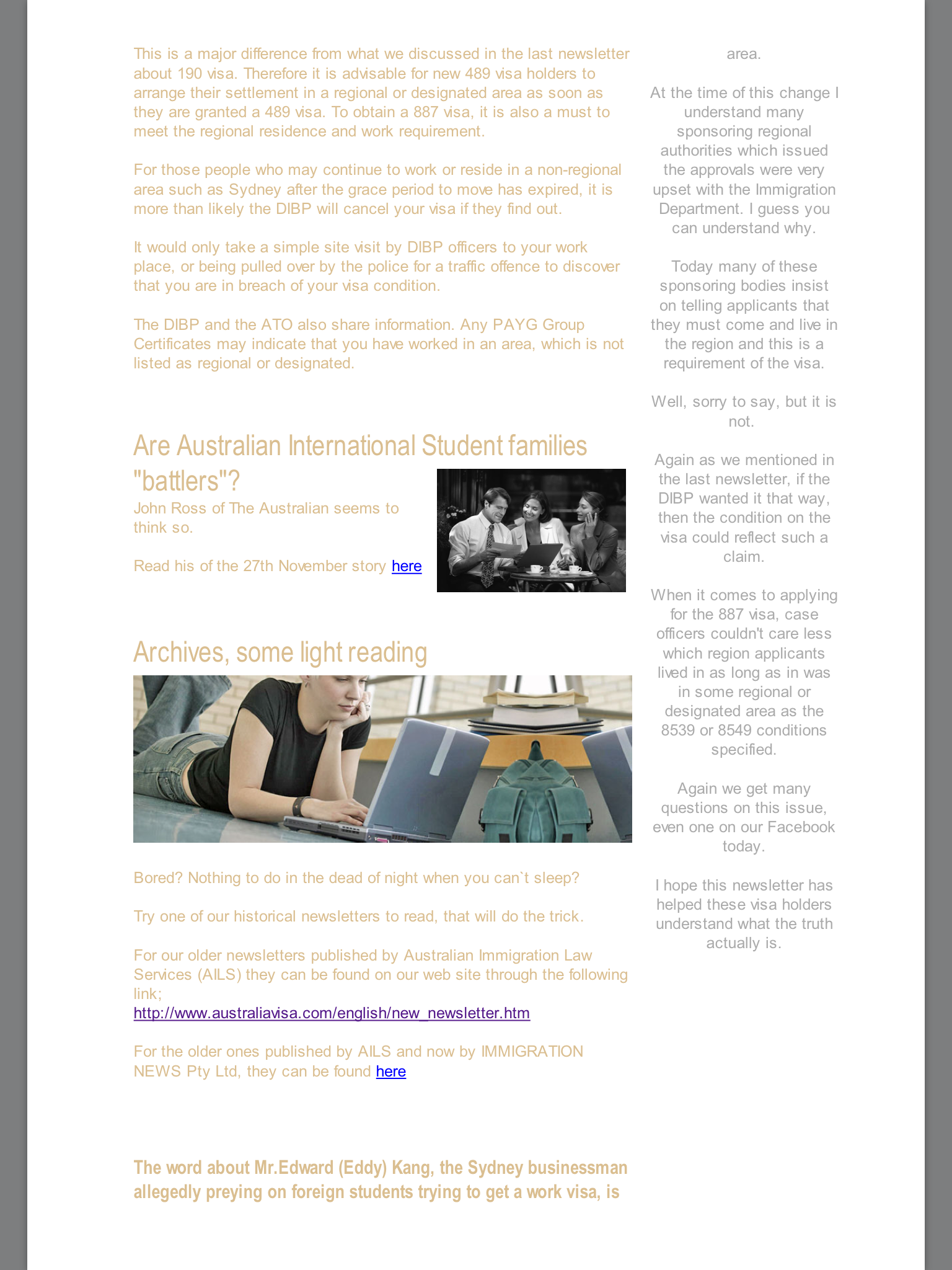 May concern lang ako. Kasi based sa nababasa ko, ang minomonitor ay kung saan ka nagwowowrk and live. How about study? Kasi southern inland ako nakasponsor. Balak ko sana mag ANU if ever makaipon. Eh ang univ na yun is nasa katabi lang, ACT pero outside na sya ng region. What will happen kaya? Is it a violation? Hinahanap ko kasi yung kung paano sila magmonitor sa study..