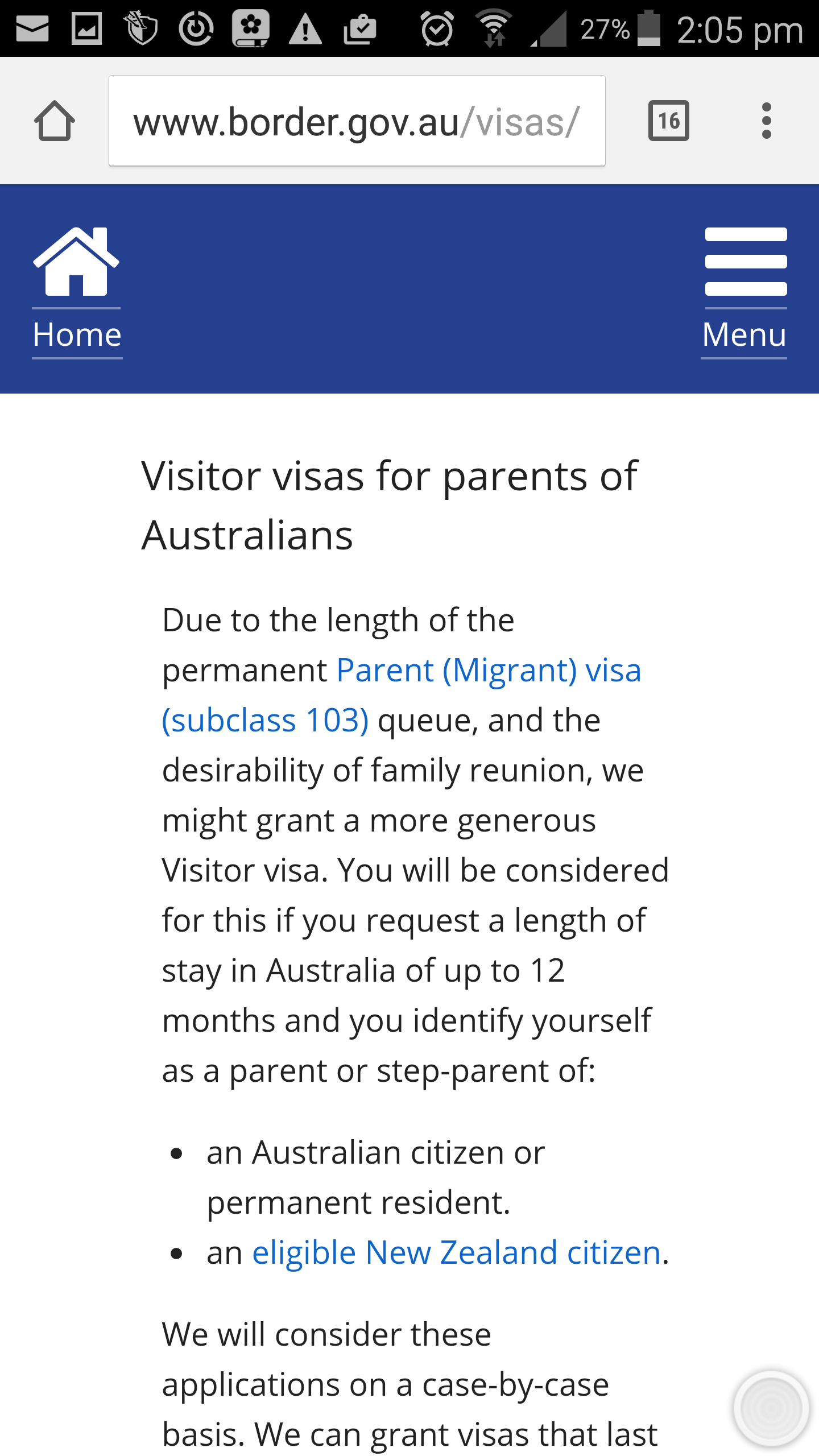 @engineer20 kya po 12 months.nakalagay sa website na they can give 12 mos for parents of au citizen or pr's. Of course depende sa knila kng ilang months granted. Bank statement, invitation letter and medicals pag more than 3 mos ang lam ko na requirements