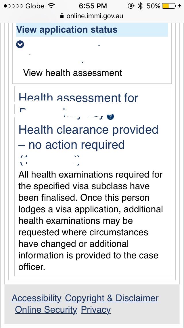 Hi maam @shie05 ako kasi gumawa muna ako ng immi account. Tapos bago po ako naglodge ng visa application nagfillup po ako sa immiaccount ng health declaration.. Pag tapos ko i fillup binigyan ako ng hap id.. Yung hap id na iyon ang ginamit ko papunta sa NHS center ba un sa makati para magpamedical.. Then after ko magpamedical inopen ko ang immiaccount after 2 days nakalagay dun sa my health declaration ko (view health assessment) nakalagay naipasa na nila ung results at no additional test required. Tapos saka ako naglodge for visa sa vfs.. Mga 1-2weeks ata nagnotify thru email sakin ang immigration na need ko ng further test.. Kaya bumalik ako magpabloodtest at after 2days binalikan ko ang immi account ko ulit sa health declaration nakalagay ongoing ung processing ng additional tests ko.. After 2 days ulit pag log in ko immi under my health declaration nakalagay na dun submitted na ulit at no further test required na po.. Until now ganun pa din nakalagay.. I'm not sure po sa iba kung paano.. :( hope nakatulong po kahit medyo magulo ata explanation ko..