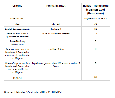 07.29.2016: Partner's ACS Result - AQF Bachelor Degree (4yrs deducted / 5yrs up to Present for the work experience)