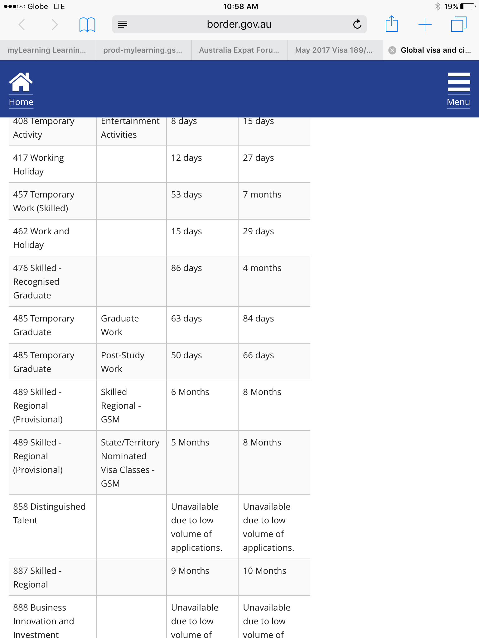 3. @chikiting | 189 | 25 Nov 2016 | Dec 5, '16 and Mar 31 / Form 815 Health Undertakings | GSM Adelaide l Date Granted | Melbourne | Initial Entry Month/2017
