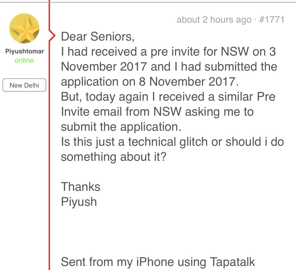 28 November 2017 - Approved application for NSW nomination and received an ITA for Visa 190
