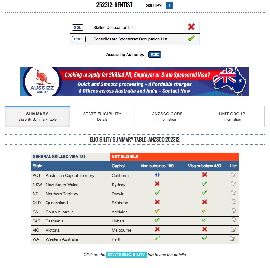 hello! so far wlapo sa skilled occupation list ang dentist now..nasa consolidated list po sia meaning u cn apply for visa 190 or 489 thru state sponsorship and so far d states who cn sponsor in this profession are as attached.
