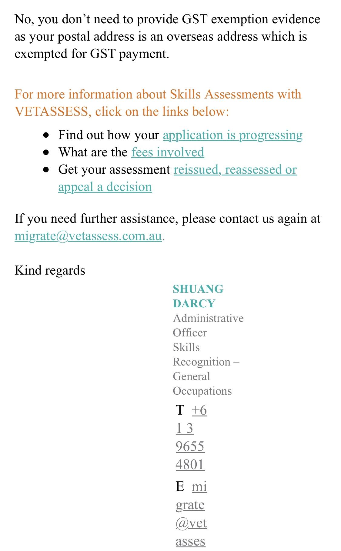 For those who are applying for vetassess assessment and you dont have any AU address sa forms you dont need to pay the GST and submit any evidences.