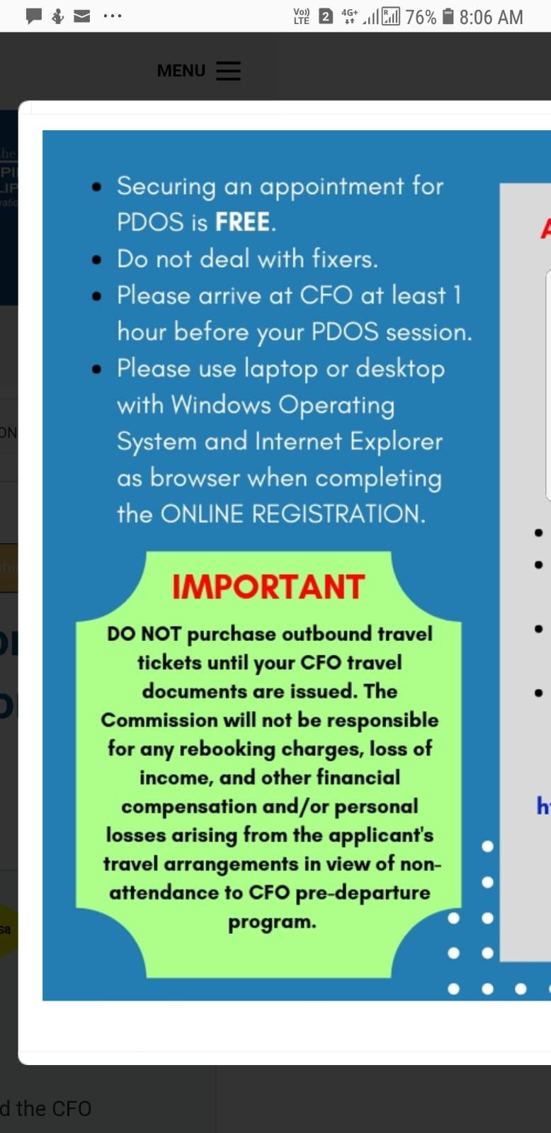 Mga Sir/Madam good afternoon. So to summarized po, need p dn ng PDOS/CFO even though you're PR? Mjo nalilito po kc aq ksi my agent is insisting n di n need. Pero may mga nakapagsabi here s forum n need CFO. Since my time p dn po kmi before BM, so better take nlng? thnks. God Bless