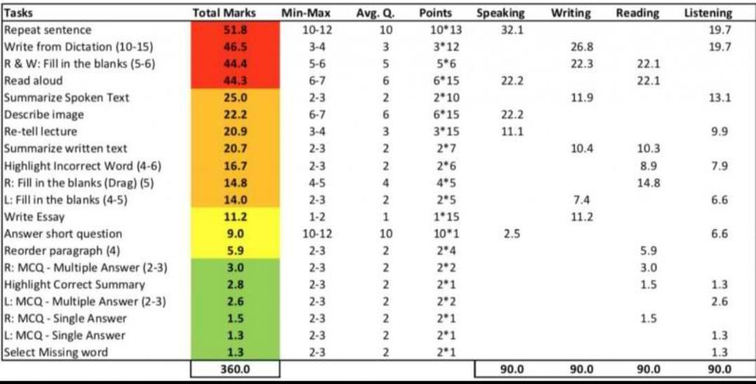 Hello po, pasensya na kung naulit na itong hingin, pwede po bang mahingi uli yung breakdown ng point system sa PTE? Para malaman ko po kung saan ako magfofocus. Medyo sablay ako sa writing at listening madalas. Thank you in advance.