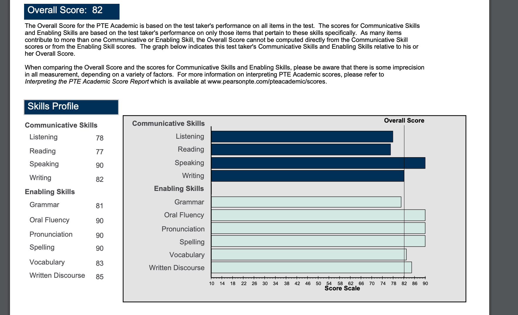 PTE ACTUAL EXAM RESULTS: