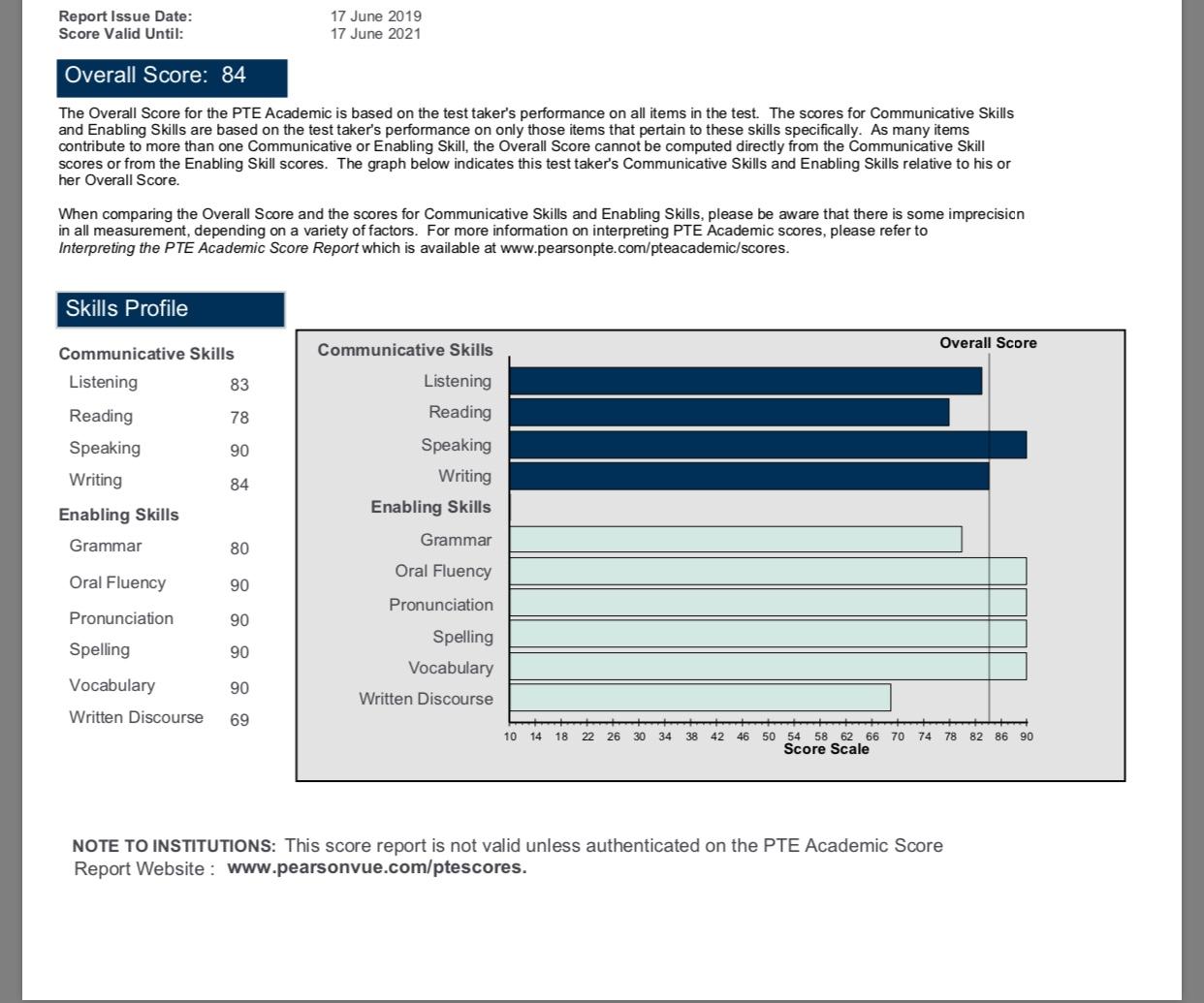PTE ACTUAL EXAM RESULTS: