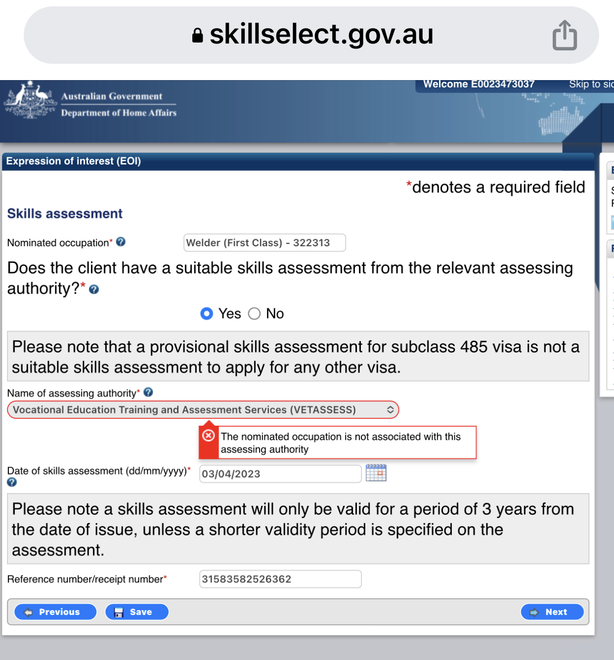 Hi po. Sana po may mkatulong sken lalo n po welder/boilermaker. Nag tatry po kasi ako mag fill out ng EOI pero hindi ko po alm ilalagay s nominated occupation. Ang skills assessment ko lng po ay yung VETASSESS. Kaso sabi s picture hindi po dw associate yung welder. (See picture below)