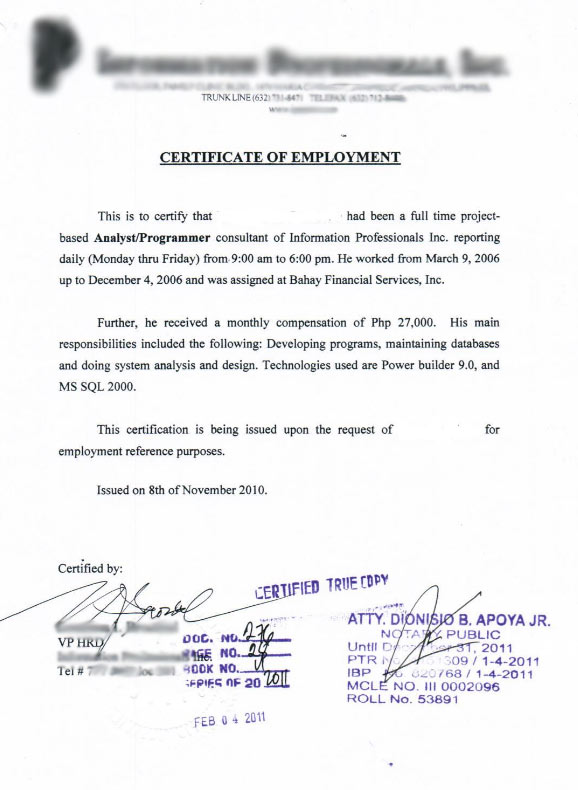 @aolee, parang hindi ganyan ang nasa isip ko na COE, medyo plain ang dating. :) mas mainam nga maelaborate more ung Job description para sigurado. but thanks aolee for the sample.